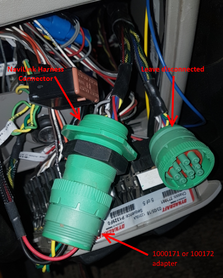 Insert 9 pin connector into provided NaviLink harness and twist to lock. Please note that the other side of the harness Y-Cable is not to be used. See example below. Colors may vary.