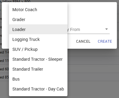You can select from the list of vehicles types you have set up.